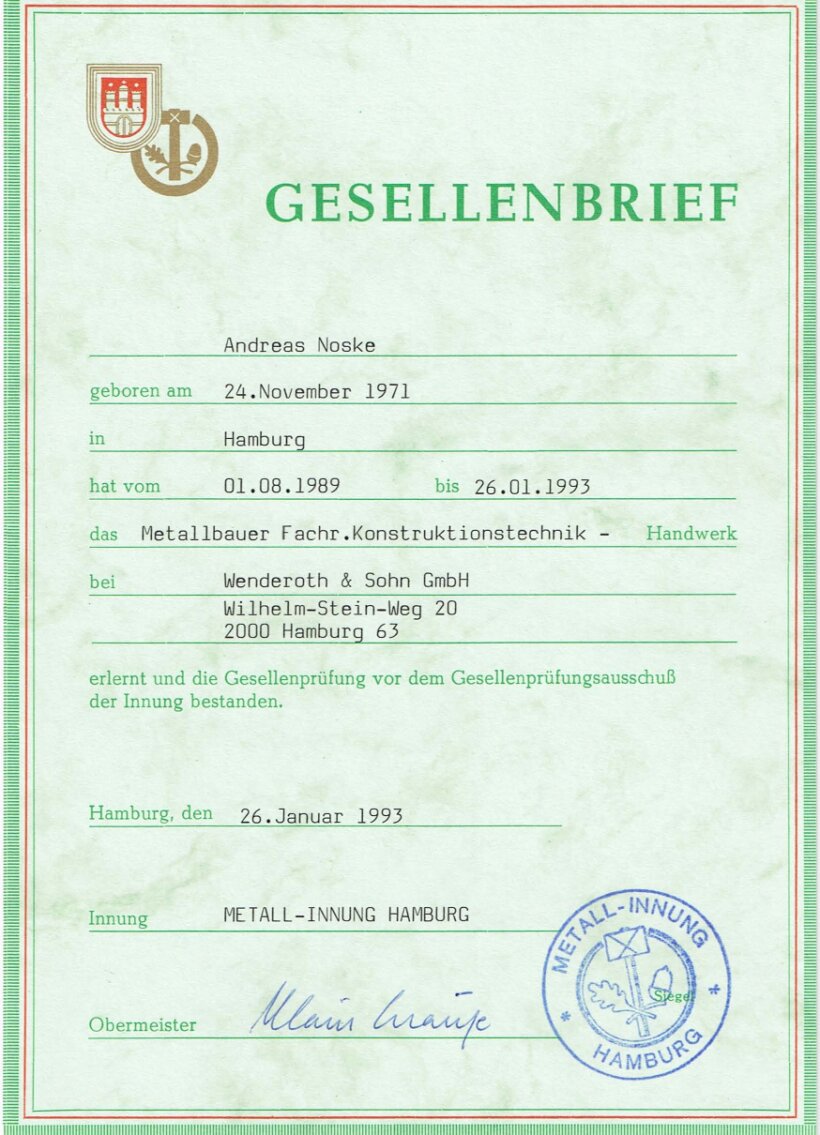 Ausbildungszeit: 01.08.1989 - 31.01.1993